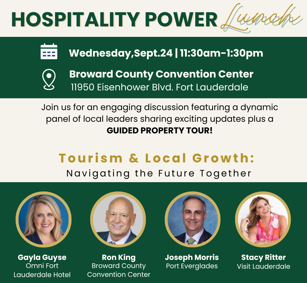 Join the FRLA Broward Chapter for an engaging discussion featuring a dynamic panel of local leaders sharing exciting updates plus a guided property tour! You’ll hear firsthand about the new and sophisticated Omni Fort Lauderdale Hotel, the highly anticipated expansion of the Broward County Convention Center, transformative projects at Port Everglades, and Visit Lauderdale updates – including IPW 2026 countdown!